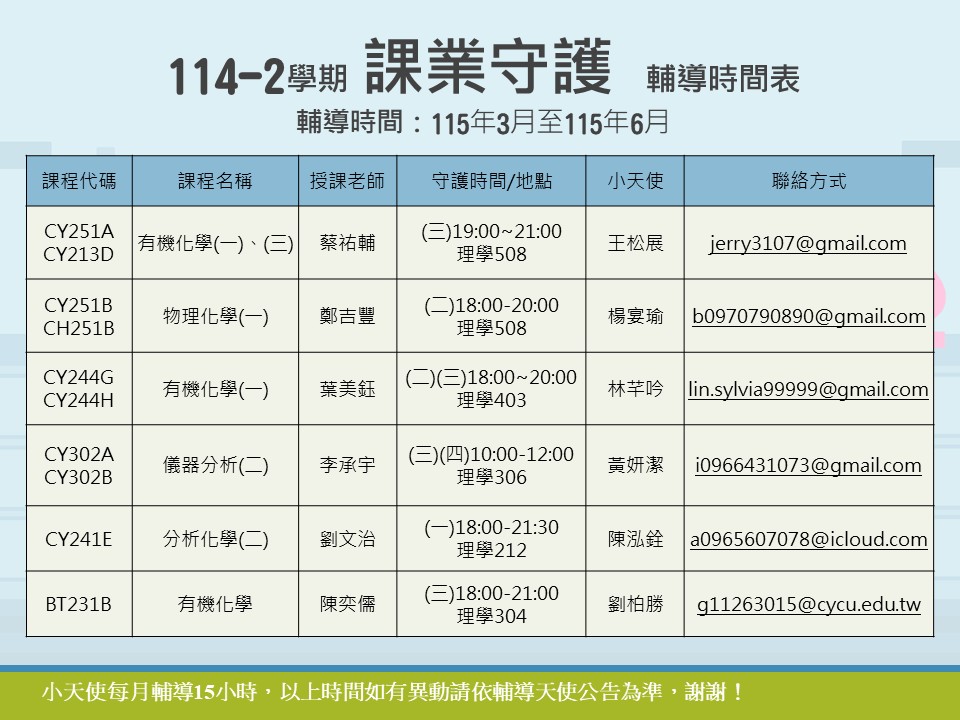 *114-2 學期諮詢室排班時間如下: –