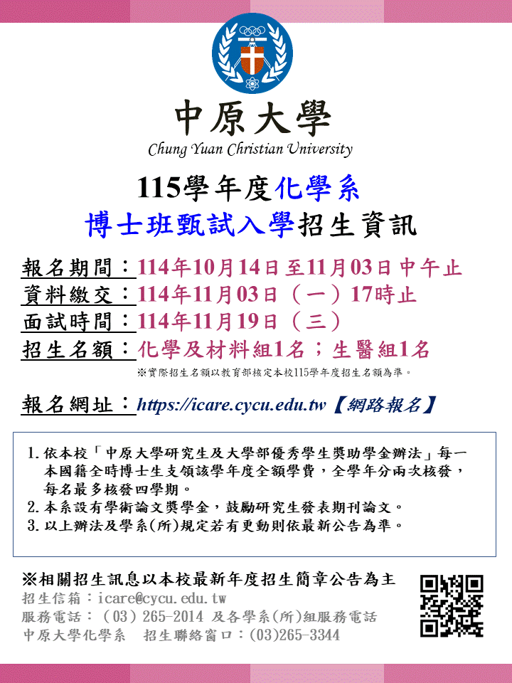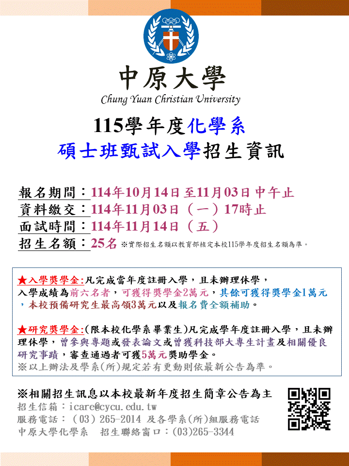本系教學特色上,注重基礎化學、應用化學及跨領域學養,加強學生獨立思考、獨立實驗及獨立解決問題的能力。教師研究方向包含,電池開發、生醫材料、高分子材料、新材料合成及特性研究、生物化學、藥物開發、環境保護、新分析方法開發、有機/無機合成及理論計算等。
